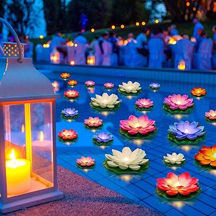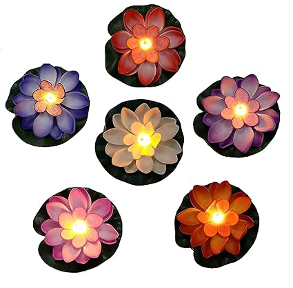 Festive Mela Lotus Flower Floating Diya Set with Water Sensor (Set of 6) | Multicolour | Artificial but Natural Looking Flower with LED Light, Best for Diwali Purpose, Decoration